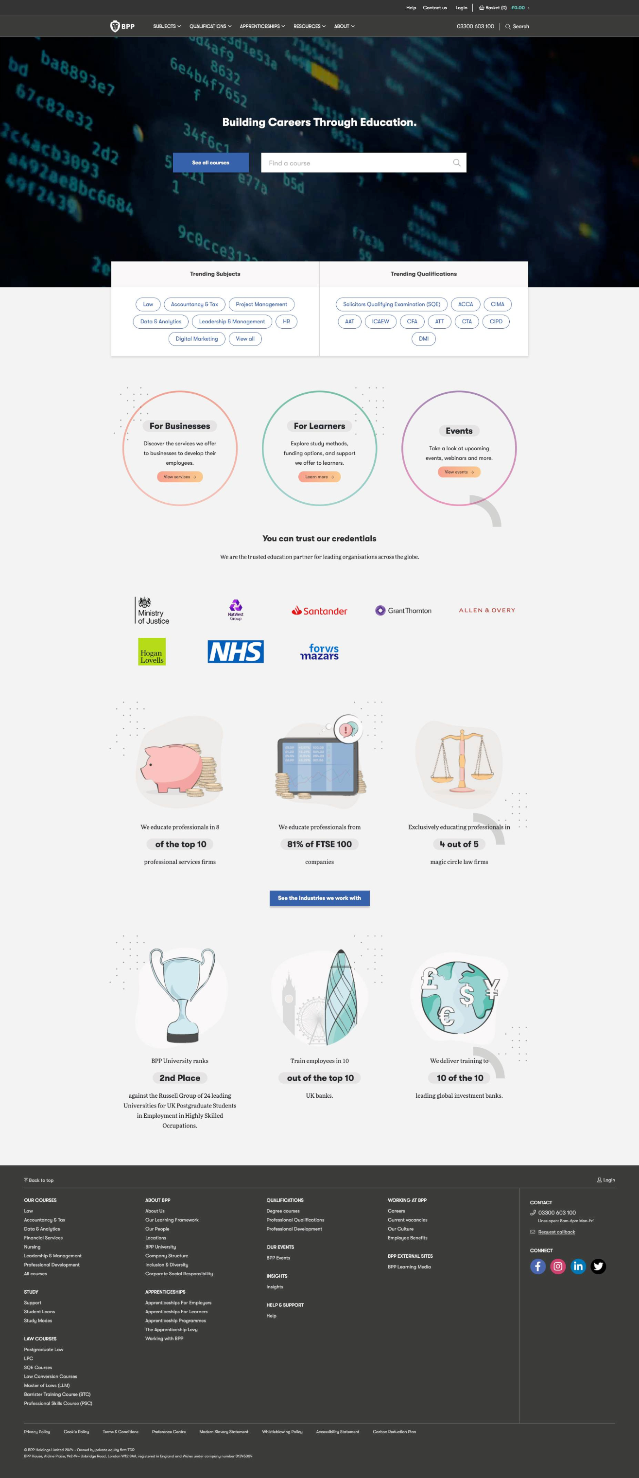 The redesigned homepage improved clarity of purpose and made key actions easier to find. Early feedback has shown users are better able to understand BPP’s core offerings and navigate to relevant areas of the site.