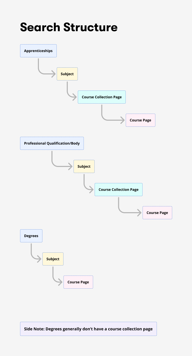 I also identified the structure of pages, this helped construct the visual representation of our data on the search pages, allowing us to add information chips to reinforce the user's decision to click the appropriate content.